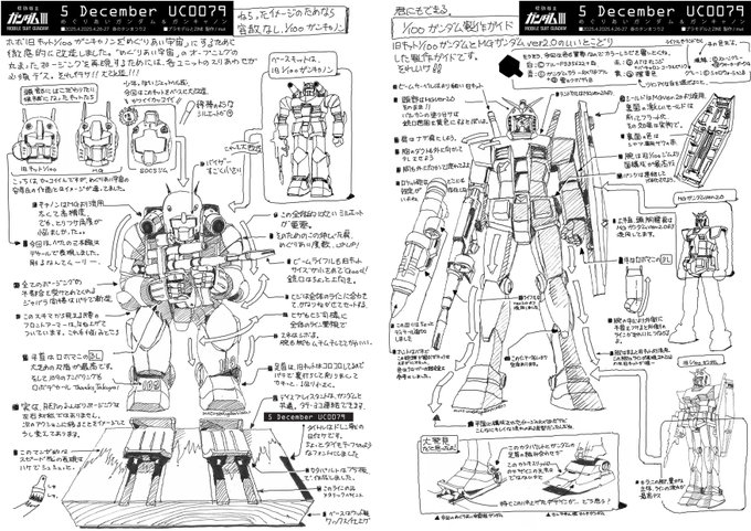 「めぐりあいガンダム&ガンキャノン」ZINE。見開きページはこんな感じ。カトキ氏が手書きでMGやHGUCの開発画稿を描いていた時のイメージで描いてみました。 明日は最終ページ、ちょっとしたお知らせありです。お楽しみに= #いわき春のタンまつり #ガンキャノン_mat #RX78_mat