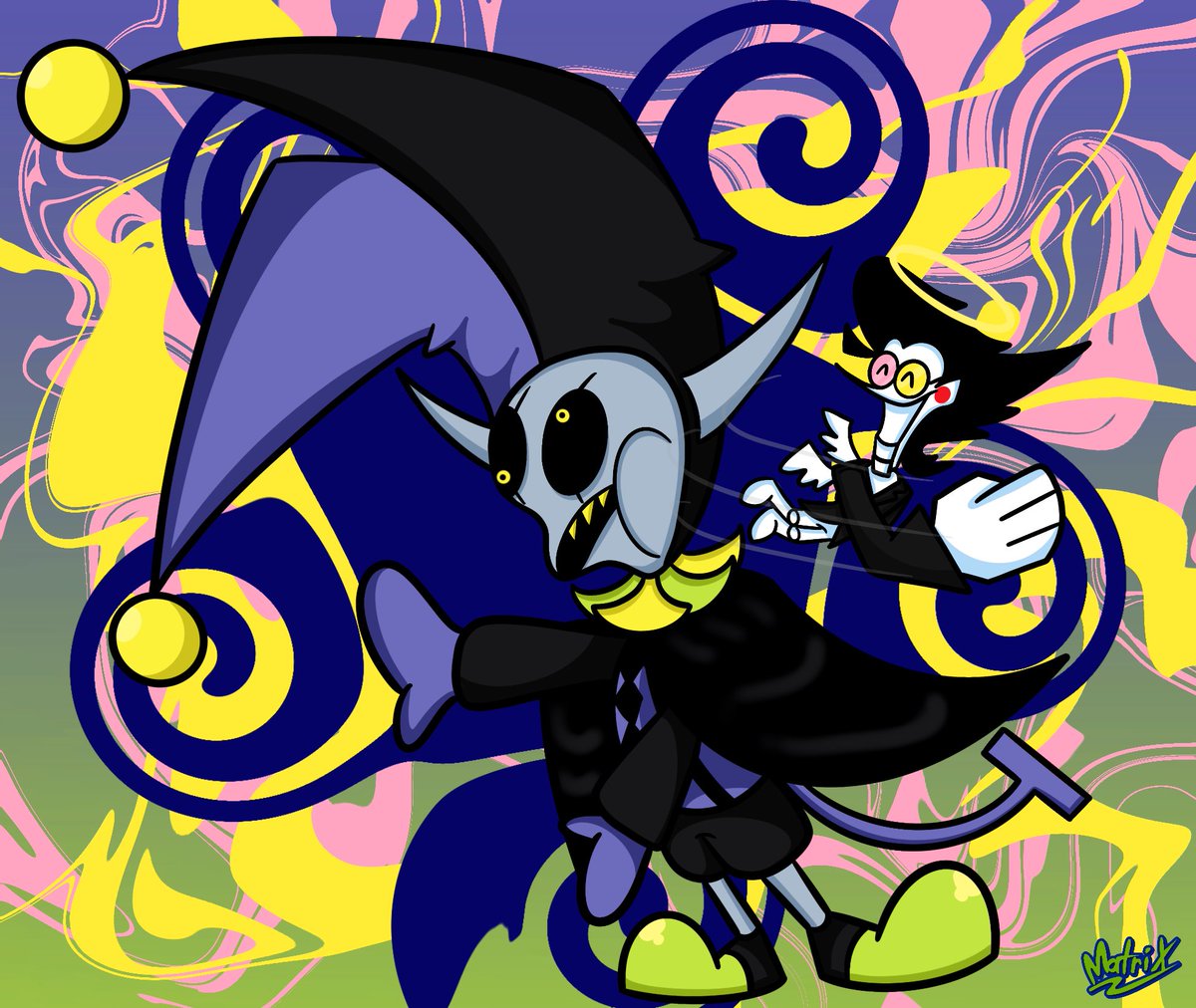 After seeing fanart of @NE0Nbandit's Mike and Host. I had the urge to draw one myself. So after a lot of resistance, fighting with myself to finish what I was doing before this, and around 2-3 hours, here's Mike and Host! (by me) #deltarunefanart
