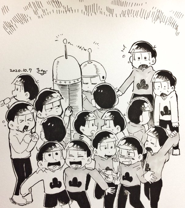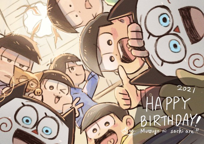 #松野家6つ子生誕祭お祝いイラスト #松野家6つ子生誕祭2021 \6つ子お誕生日おめでとう!!!/ さん放送が始まってから“6”度目の生誕祭ですね…!!めでたい!!これからも健やかにわいわいして~!😭🎂🎉🎊🍻
