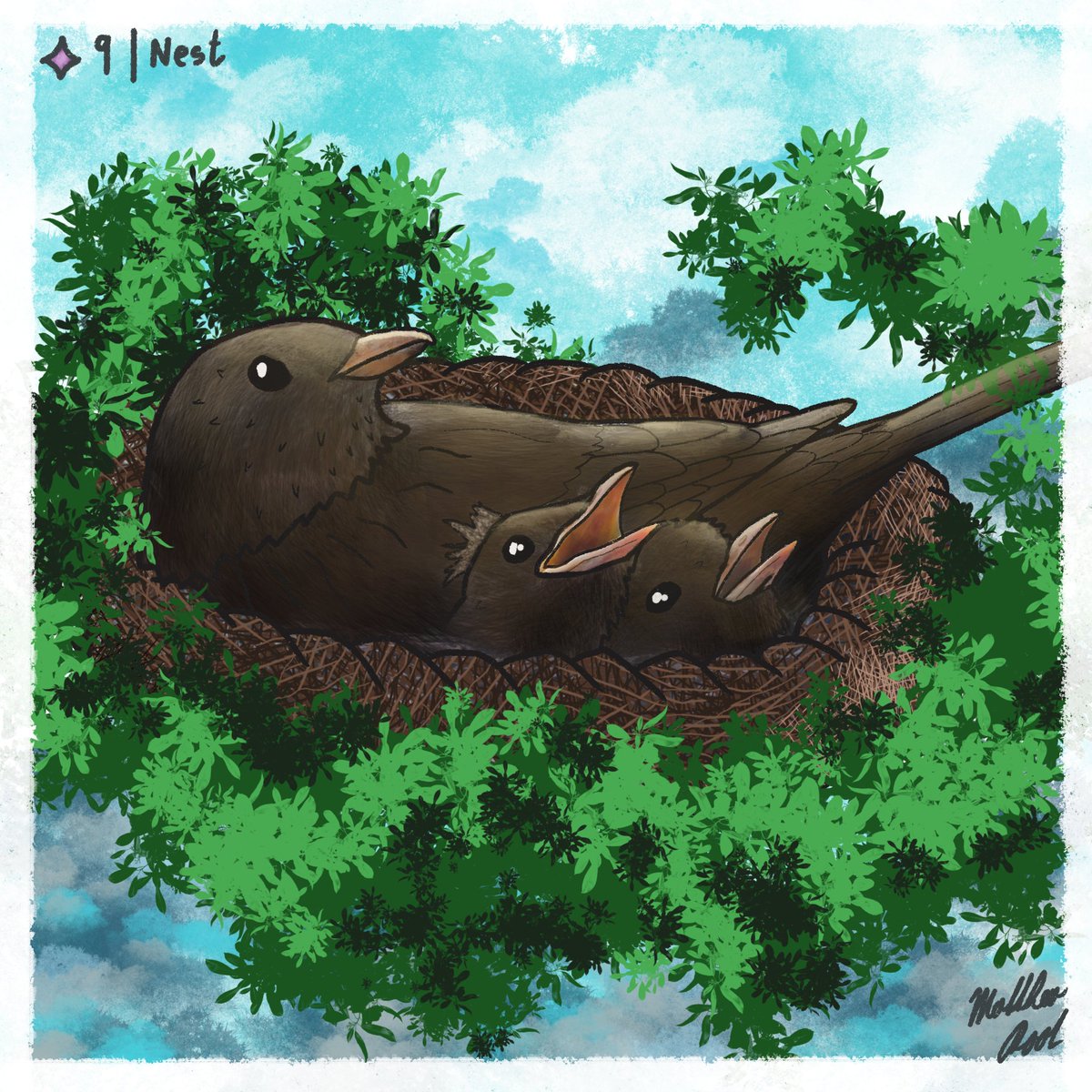 Day 9 - Nest I really love watching birds fly around...always makes me kinda sad tho...I wish I had a pair of wings myself so I could fly high above the clouds, feel the wind and just be...free... #Inktober2022 #Day9 #nest #birds #freedom #birdie #digitalart