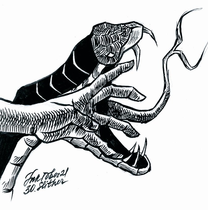 #InkTober21 Day 30 - Slither - Бенджи, дай руку! - Нет! Тебе опять будет больно! - Плевать! Давай сюда свою чёртову руку сейчас же! Я спрятал ладонь за спину. И провалился в бездну. #inktober #inktober2021 #inktoberday30