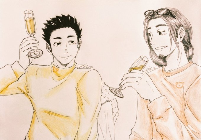 #澤村大地誕生祭2022 #東峰旭誕生祭2023 🥂🥰Happy late birthday for Daichi-san and Asahi-san! (Tho still two hours for new year here ^^) It's Summer here, it was hard to draw a single turtleneck 😂