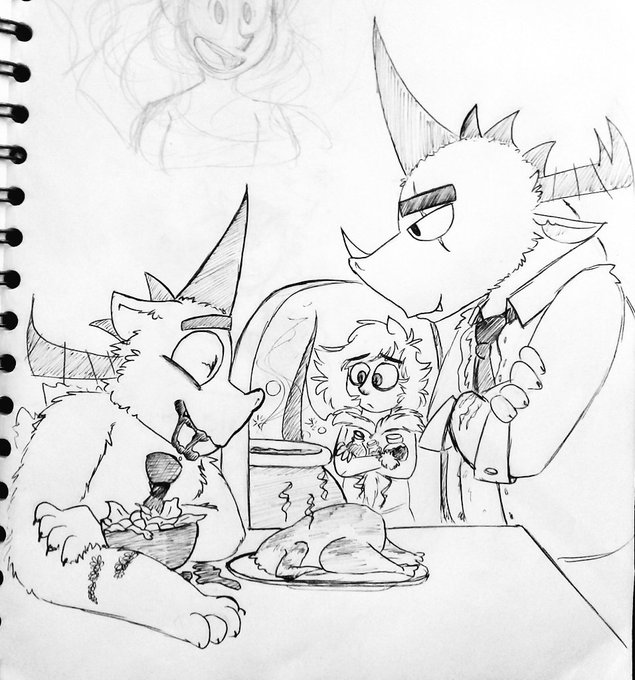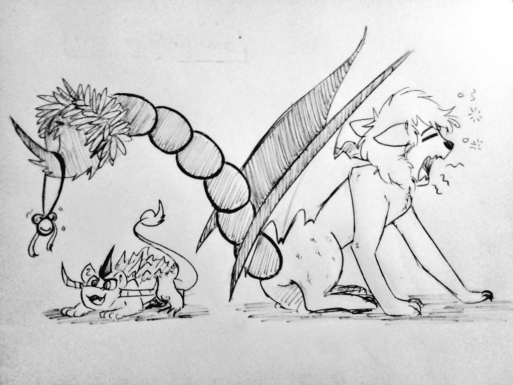DÍAS 4, 5, 6 #INKTOBER #Inktober2018 #TwitterMagicCollege La cría de Quet y Blair se puso de rebelde, queriendo ser "Vegano" para molestar a los padres... Yuma no puede subsistir de solo comer plantas. Blair le hace pociones pero Quet lo tienta para mostrar que tiene la razón.