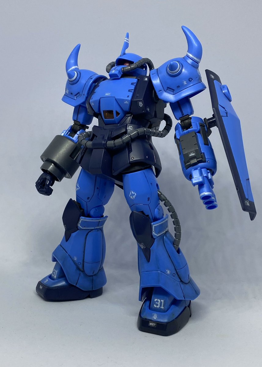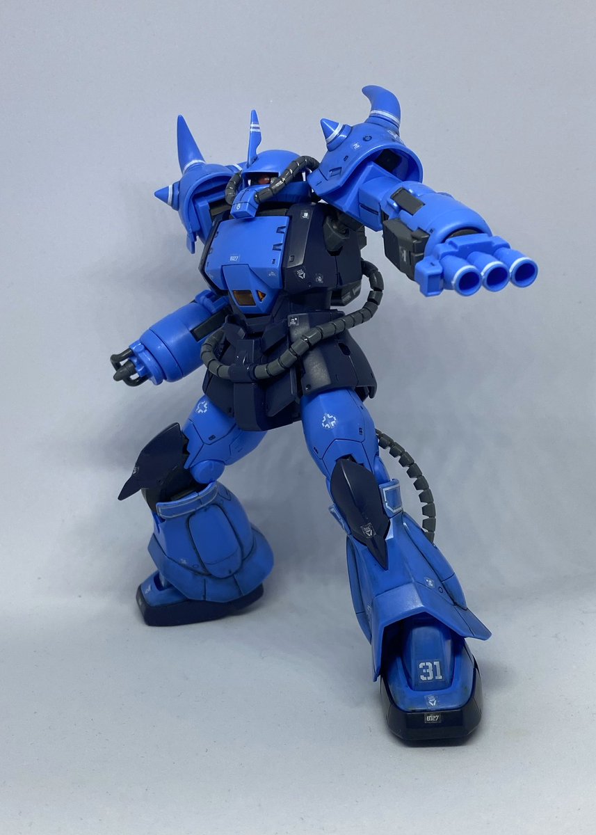 #ガンプラ #グフ #まるコンペ HGプロトタイプグフ、表面処理完了です。とりあえず色々とポージングしてみました😊