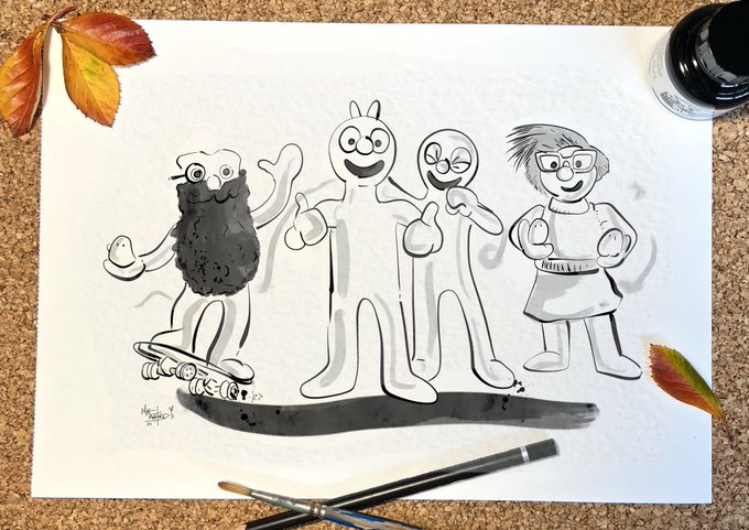 Inktober 🎃 Day 23 Morph and the Gang @AmazingMorph 🎨 #inktober #inktober2022 #ink #illustration #inks #penandink #morph #aardman