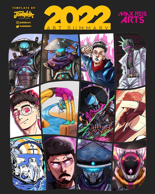 Meu #Artsummary2022 com o template do fantástico @JoninhaArt Hoje foi um ano e tanto. Pedi demissão de um "sonho" que era um emprego de ilustração para viver a vida de freelancer. Estagnações, Crises de Identidade e o prazer de conhecer várias pessoas legais. 2023 será MEU!