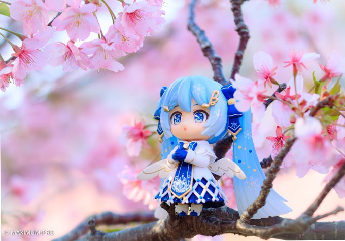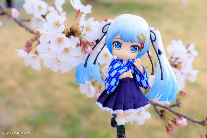 【3/29 きめぽーず】 ねんどろいどと比べて可動域が広いので、 色々なポーズを練習できたらなぁって思います😌 #深夜のねんどろ撮影60分一本勝負 #雪ミク #ねんどろいどどーる #みくさんぽ #桜 #花見