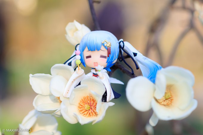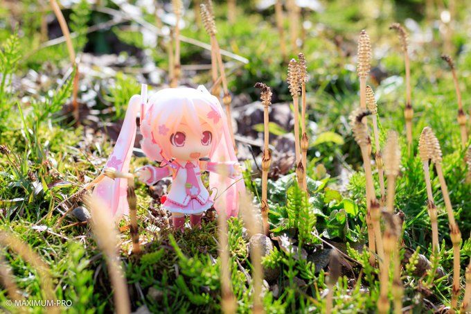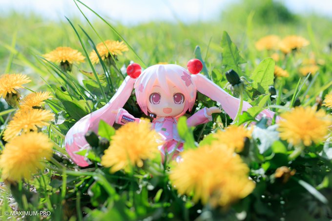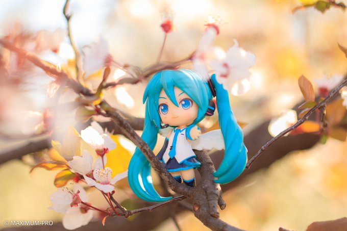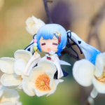 #深夜の初音ミク撮影60分一本勝負 4/19のお題【ふんわり】「フライング」 花撮に使ってる望遠マクロレンズ(90mm)は背景を圧縮してふんわり暈した絵が撮れるので割と愛用してるレンズです📸 #初音ミク #ねんどろいど #みくさんぽ #マクロレンズはいいぞ