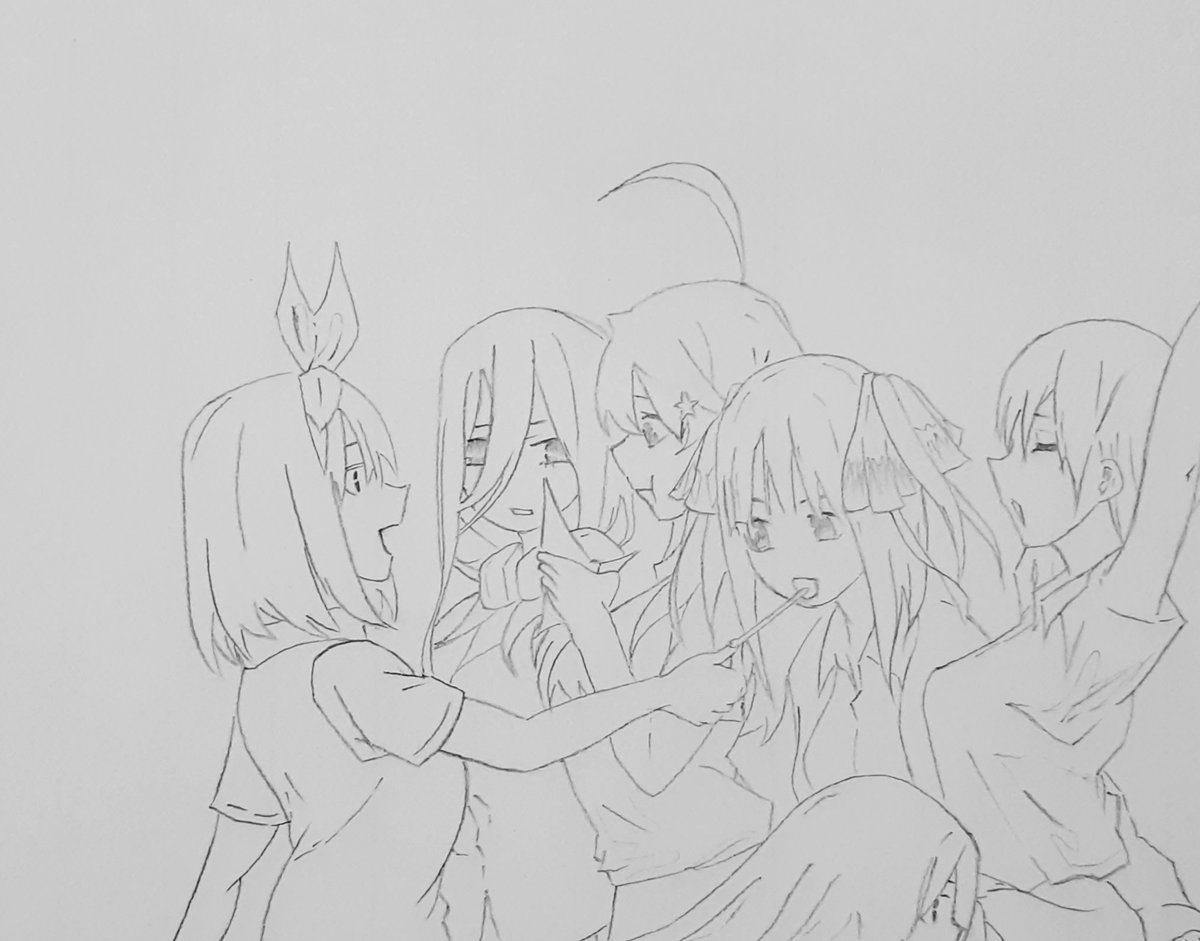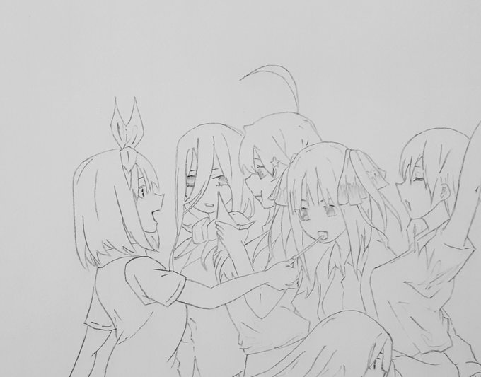 完成はメイン垢で 明日くらいにあげます~(o^-')b ! 【 メイン垢 】 May☘️(Ჾ ᢦ Ჾ ) ( @inorin_may5 ) おやすみなせ~🍀 #五等分の花嫁 #イラスト #模写 #五等分の花嫁好きな人と繋がりたい #イラスト好きさんと繋がりたい