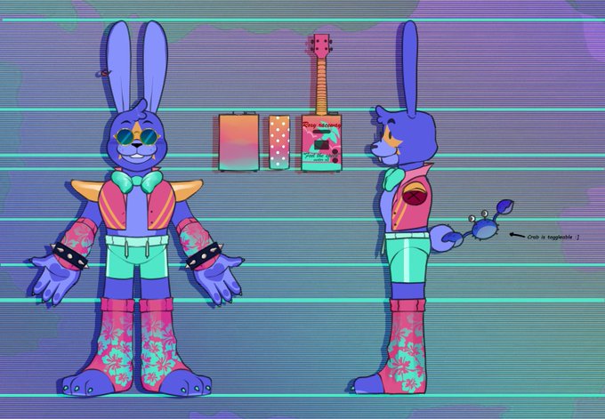 Meet surfer dude glambonnie instead of just being intrested in just bowling he also can reside in the chica of the sea exhibit! #fnafsecuritybreachfanart #fnafart