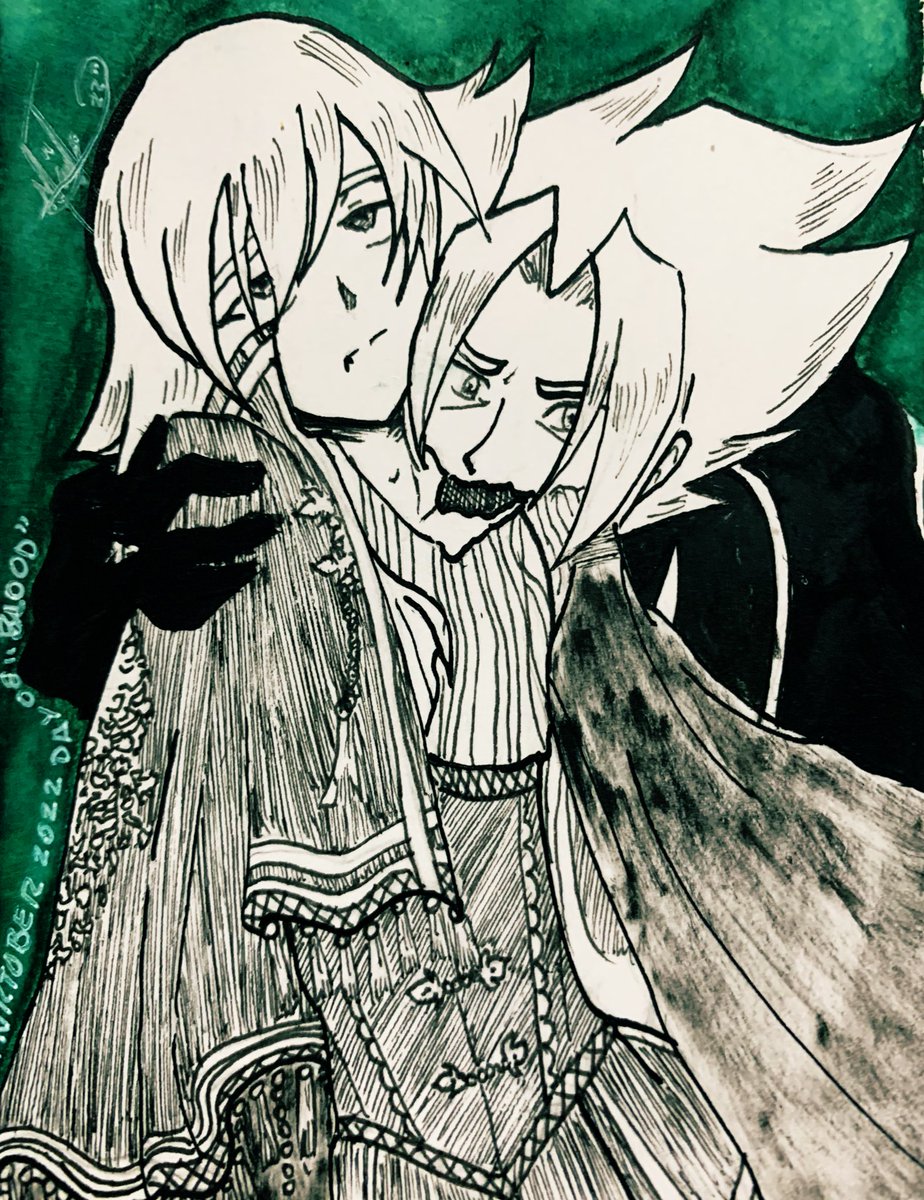 Inktober Day 08 “Blood”: I did this thinking of @yourhobito ‘s Vampire AU because it lives in my mind rent free I wanted to depict the moment where Marco bit Lyserg and Lyserg is loosing it #SHAMANKING #LysergDiethel #MarcoLasso #inktober2022 #シャーマンキング #リゼルグダイゼル