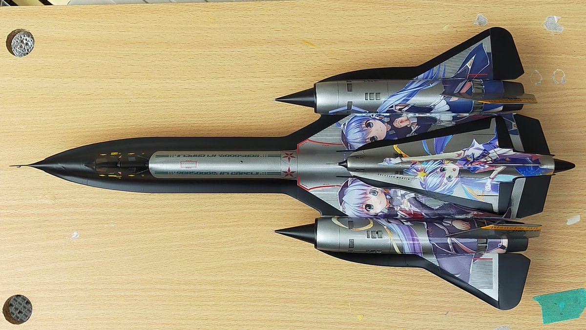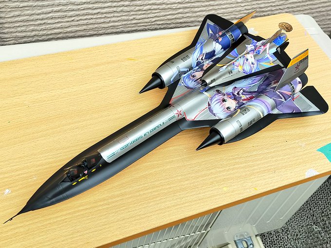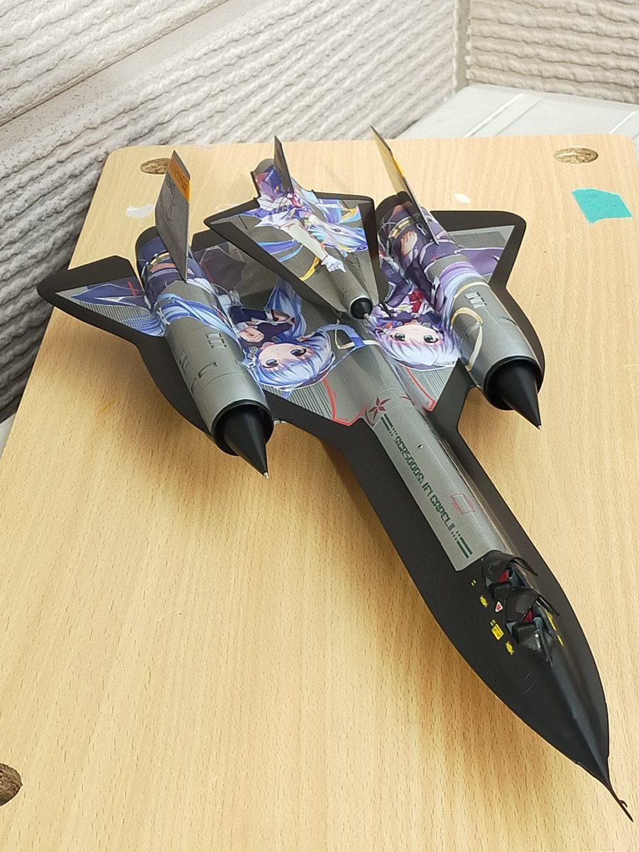 SR-71M ver.planetarian完成とします!! 初めての痛機なので、あちこち失敗してますが、正面写真がかっこよすぎるので大満足です(笑)。 実在機のM-21とは違い、SR-71の改造機という設定で、型式がオリジナルになってます。 #プラモデル #planetarian