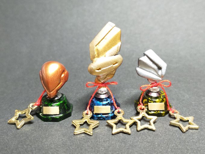 6 25 #今月作ったプラモ晒そうぜ ユメミー賞トロフィー3種です 22/07/28 23:15