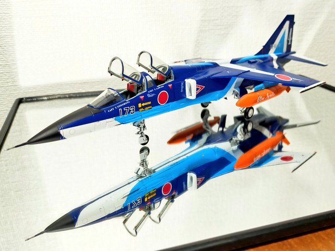 6 22 今年最初に完成したプラモは 三菱T-2ブルーインパルスです!! 各務原の展示仕様とは異なりますが、カッコいいという理由でランチャーと増槽付きです。#プラモデル #今月作ったプラモ晒そうぜ 23/02/24 18:52