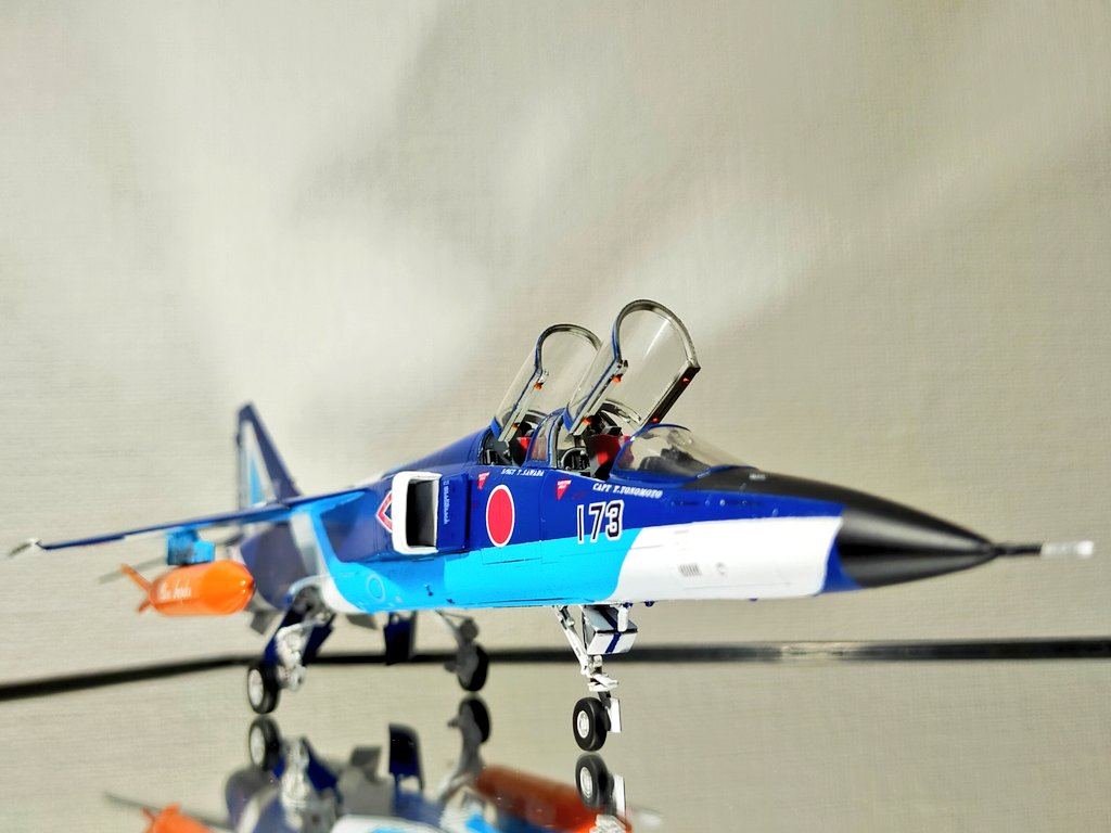 今年最初に完成したプラモは 三菱T-2ブルーインパルスです!! 各務原の展示仕様とは異なりますが、カッコいいという理由でランチャーと増槽付きです。#プラモデル #今月作ったプラモ晒そうぜ