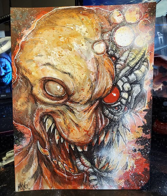 🎃#31DAYSOFHALLOWEENCHALLENGE DAY18: #CRITTERS • on 9x12 acrylic paper • #pen #quicksketch stylee + #brushpen ● #sketch #aliens #halloween #October #horror #helloween #inktober #drawloween #cyborg #pilotpen