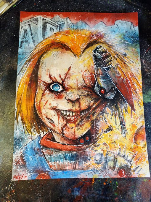 #31DAYSOFHALLOWEENCHALLENGE DAY15: #CHUCKY/#CHILDSPLAY • on 9x12 acrylic paper • #pen #quicksketch stylee + #brushpen ● #charlesleeray #donmancini #johnlafia #tomholland #sketch #31daysofhalloweenchalleng #halloween #October #horror #cyborg #helloween #inktober #drawloween