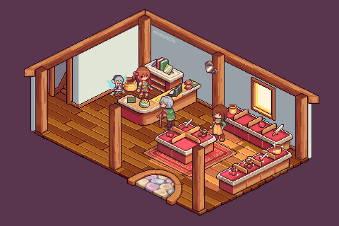I made this underground tavern isometric #pixelart back in October. I think I want to eventually remake a low poly version of it for Memora Wanderer #indiegame