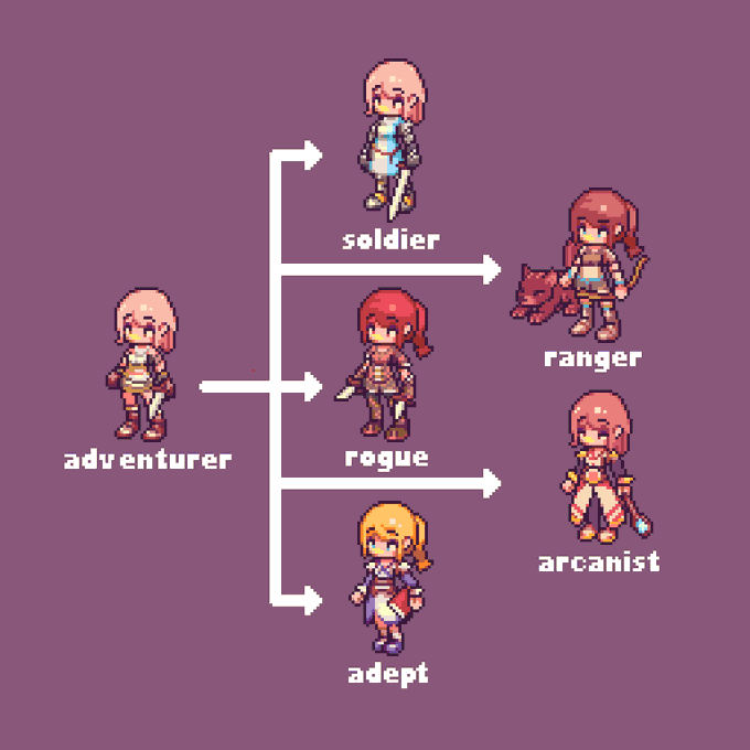 Got the 8 directions done! Now for all the animations ☠️. This class you can pick is a master of chemistry, and perhaps... biology too? Now! What should we name this class? #pixelart #indiegame #rpg