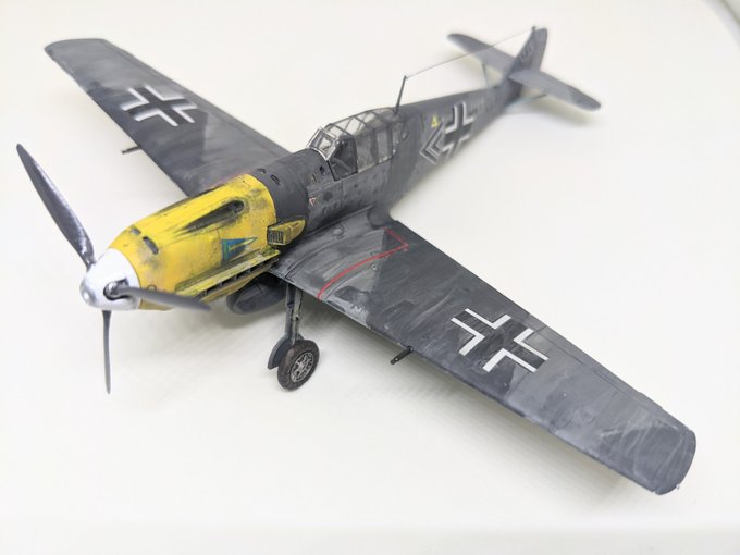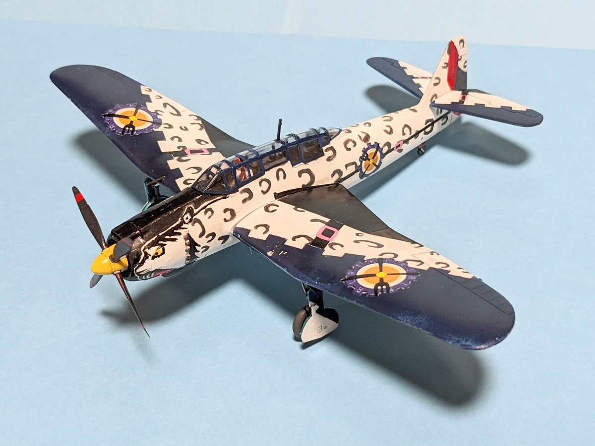 1/72彗星完成。コトブキ飛行隊・第7話バージョンなのでキリエとケイト乗せて、特製爆弾も自作しました。フルアクションキットなので今回は可動部は活かすことにしました。 #コトブキ #ナサリンの1ポンド硬貨
