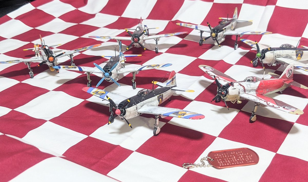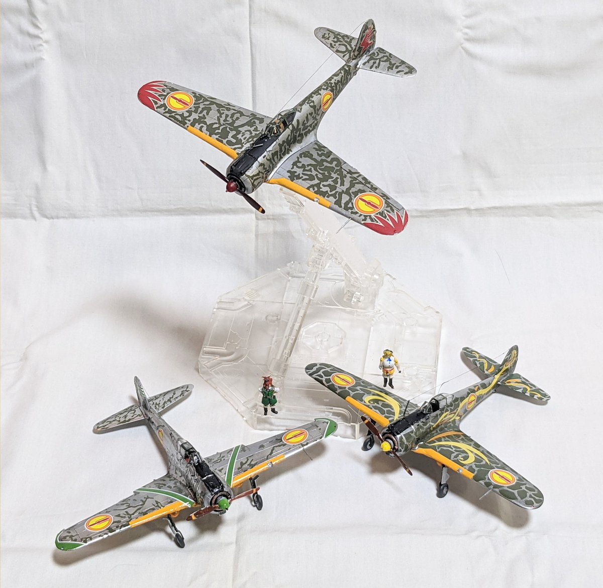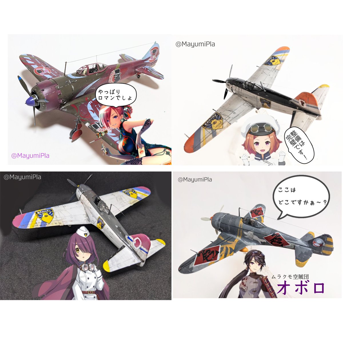 #今月作ったプラモ晒そうぜ 月が変わってしまったけど、9月〜今日にかけて完成したのは、どちらもアニメ『荒野のコトブキ飛行隊』に関連したゲーム、『大空のテイクオフガールズ』に登場した機体。スケールは1/72。
