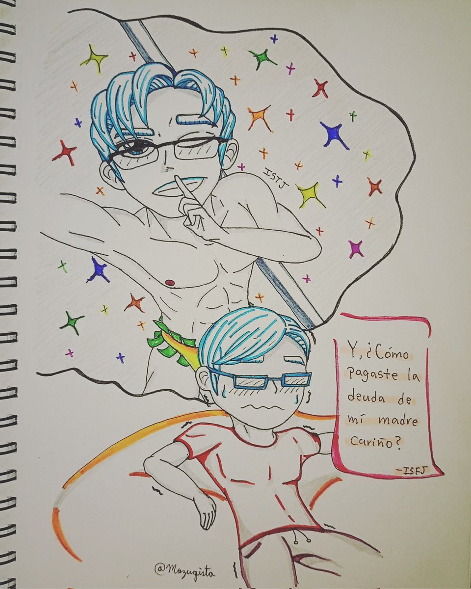 #mbtitober día 18: #ISTP diviertiendose a lo ISTP y un #entp llorando xd. #MBTI #mbtifanart #mbtiart #Inktober