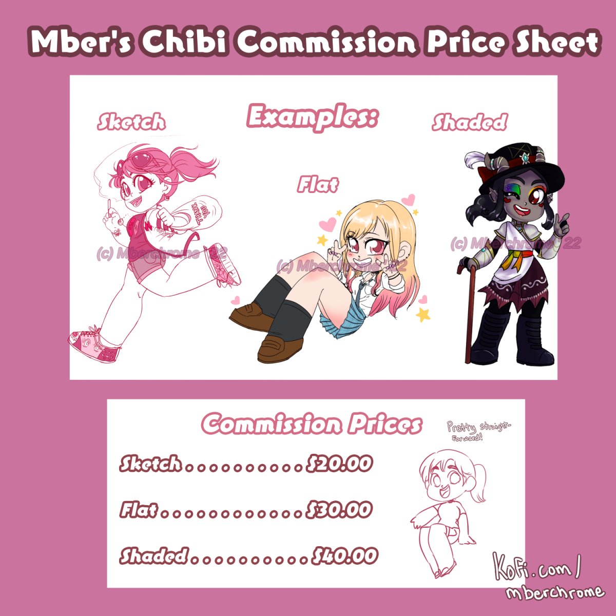 Got this Chibi #CommissionSheet updated (wanted something a little more streamlined)! If you have any questions, please send me a dm! #chibicommission #artistsontwitter #commissionart #commissioninfo #commissionpost #commissionsopen