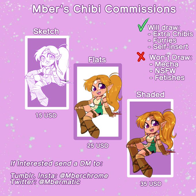 A bit plain, and a little straight-forward, but updated and opened up #ChibiCommisssions ! #commissionsopen #CommissionSheet #commissionart #ArtistOnTwitter
