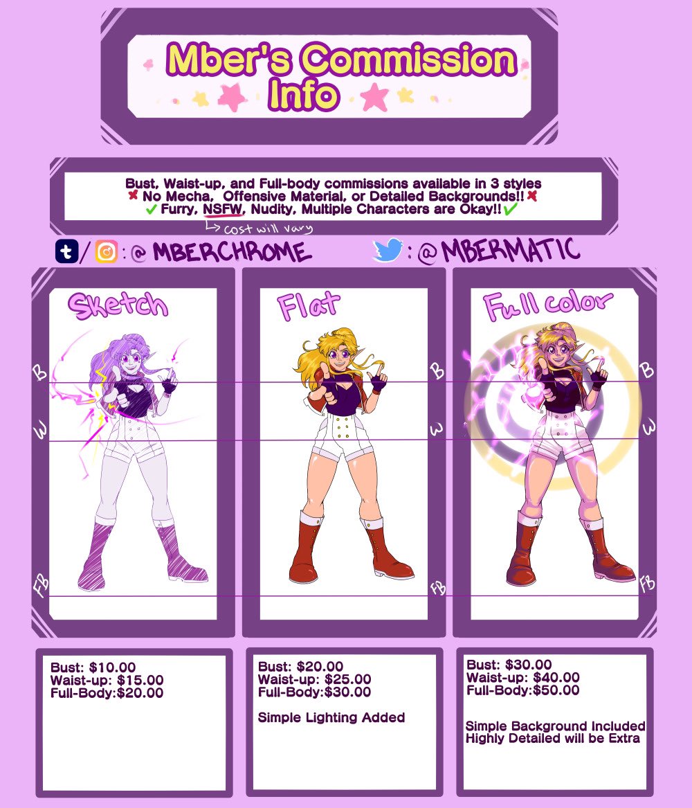 Hey y'all, finally got around to putting together this #Commission info. I'm available here on Twitter, Tumblr and Insta, so hit me up if you have any questions! #artistsontwitter #commissionsheet #commissionsopen #commissionart #cuteart