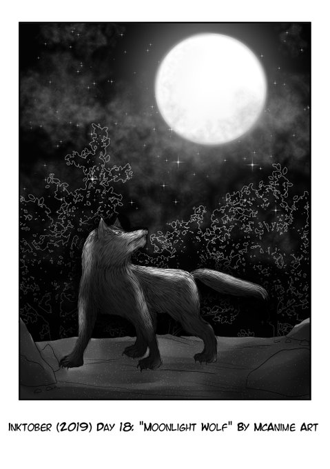 Inktober (2019) Day 18: "Moonlight Wolf" #Inktober #Inktober2019 #inktoberday18 #wolf #moonlight #originalartwork #digitalart #October #fullmoon