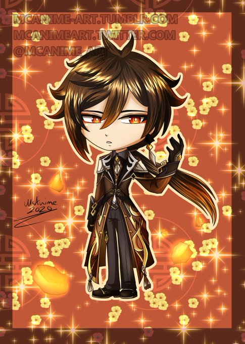 Zhongli 🧡🖤 🚫 Do NOT Repost my Art 🚫 Here is my first drawing of Zhongli in a cute chibi style! I love him so much T^T look how adorable he is! (His outift was so hard to draw...) #GenshinImpact #genshinimpactfanart #zhongli #GeoArchon #RexLapis #Chibi