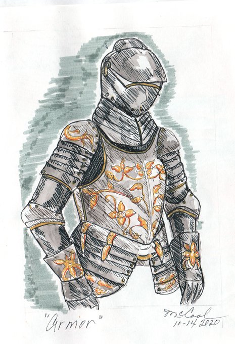 #inktober2020 todays prompt challenge is #armor. Went for just a basic medal armor I saw on google images and changed it up a bit....... Drawn in color ink, black finer liner and gel pen.