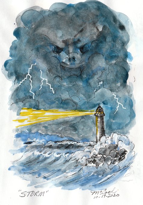 Day 17 of #inktober2020 , Todays prompt is #Storm drawn in ink washes and black fine liner pen and gel pens.