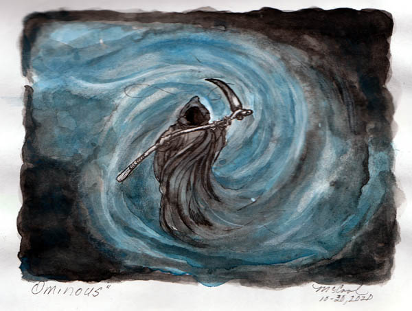 #inktober2020 day 30 and the prompt is #ominous... done with color wash and black ink fine liner pen.