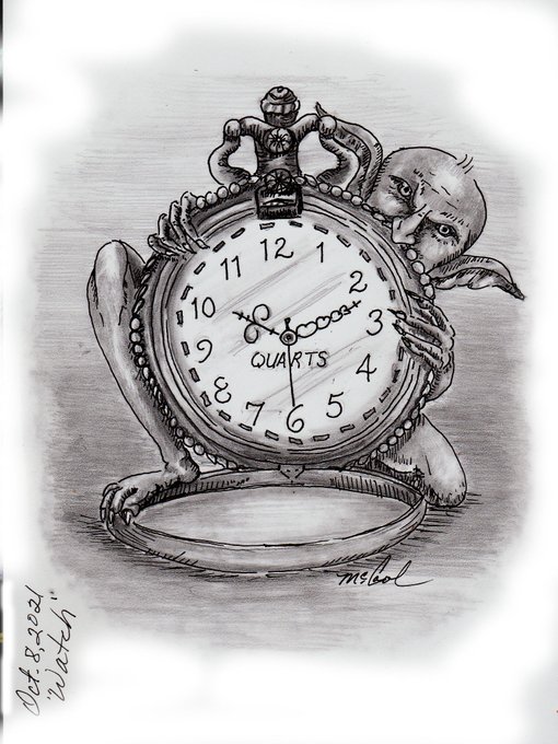 #Inktober #inktober2021 #inktoberchallenge day 8 #prompt #watch drawn with black ink and ink washes and pencil. instagram.com/d.mccoolart
