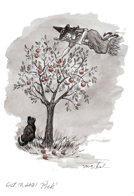 A quick 35 minute draw today no time for a better one! #inktober2021 #inktoberchallenge #inktober #prompt 10 "Pick" "Picking the big apple from the little tree" Black ink and ink washes..... intagram.com/d.mccoolart