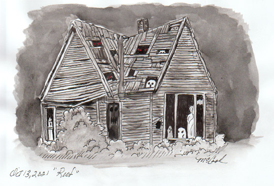 Quick 30 min. drawing for #inktober2021 Day 13 prompt #roof black Ink, ink wash and red ink. #inktoberchallage #inktober instagram.com/d.mccoolart