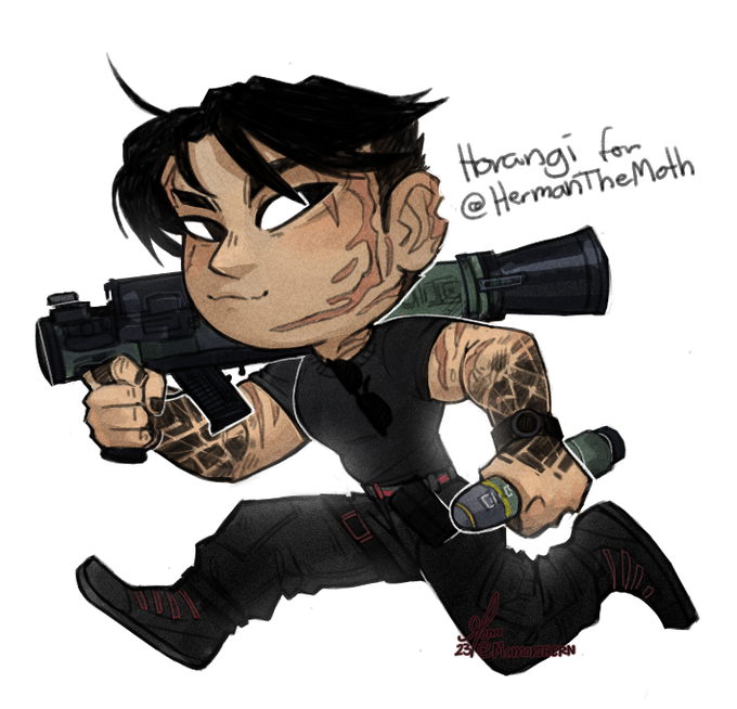 ive seen many art with him having different types of scars under the mask, but i really like the idea that they are tiger stripes :3 #horangimw2 #horangi