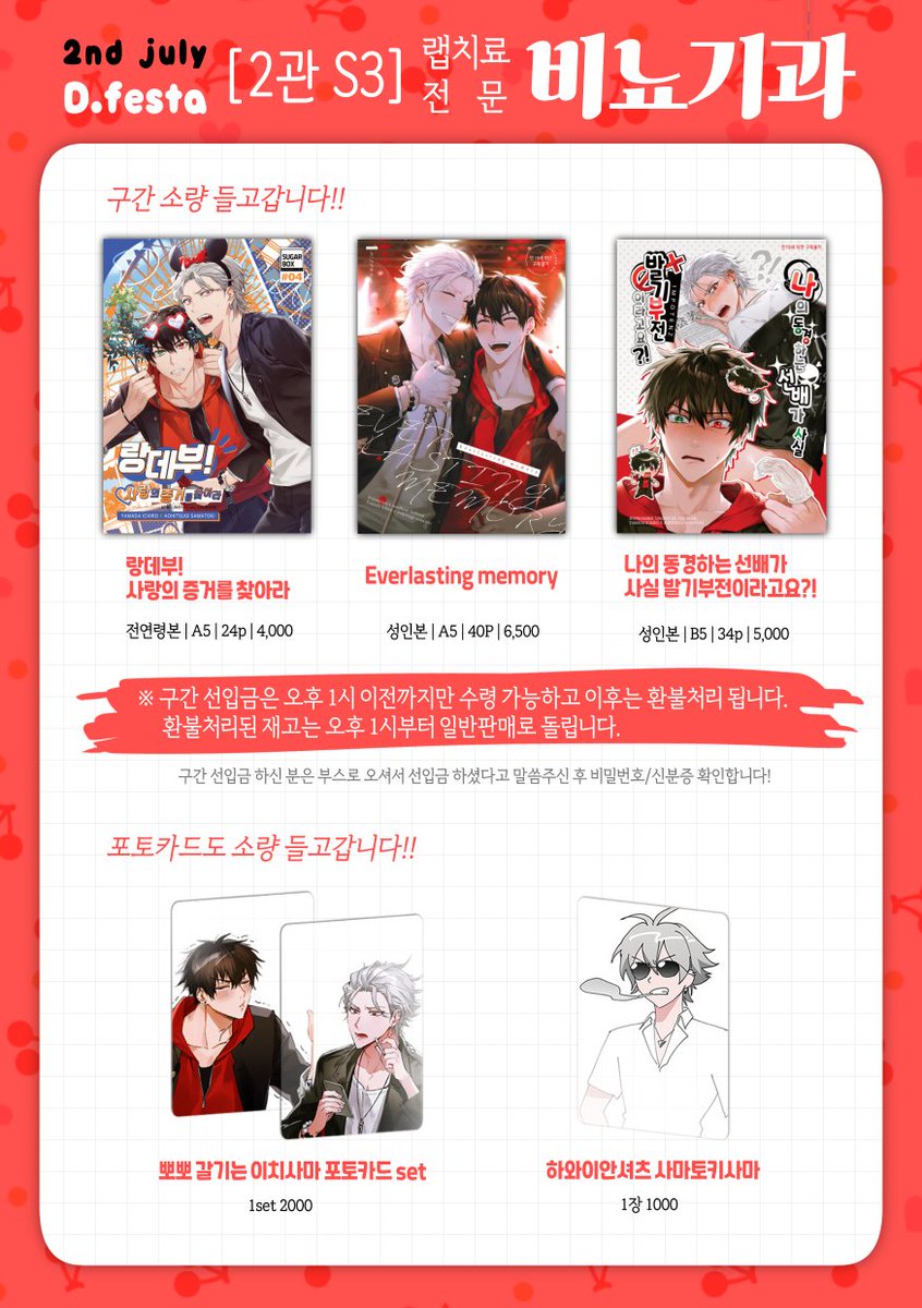 7월 2일 (토) 디페스타 이치사마 구간 현장수령 선입금 신청 받습니다. 📅(~06/18 23:59 까지) - 선입금 현장수령 신청 폼 : forms.gle/PSLre7gwd8sj6i… 입금 후 폼 작성 부탁드립니다!