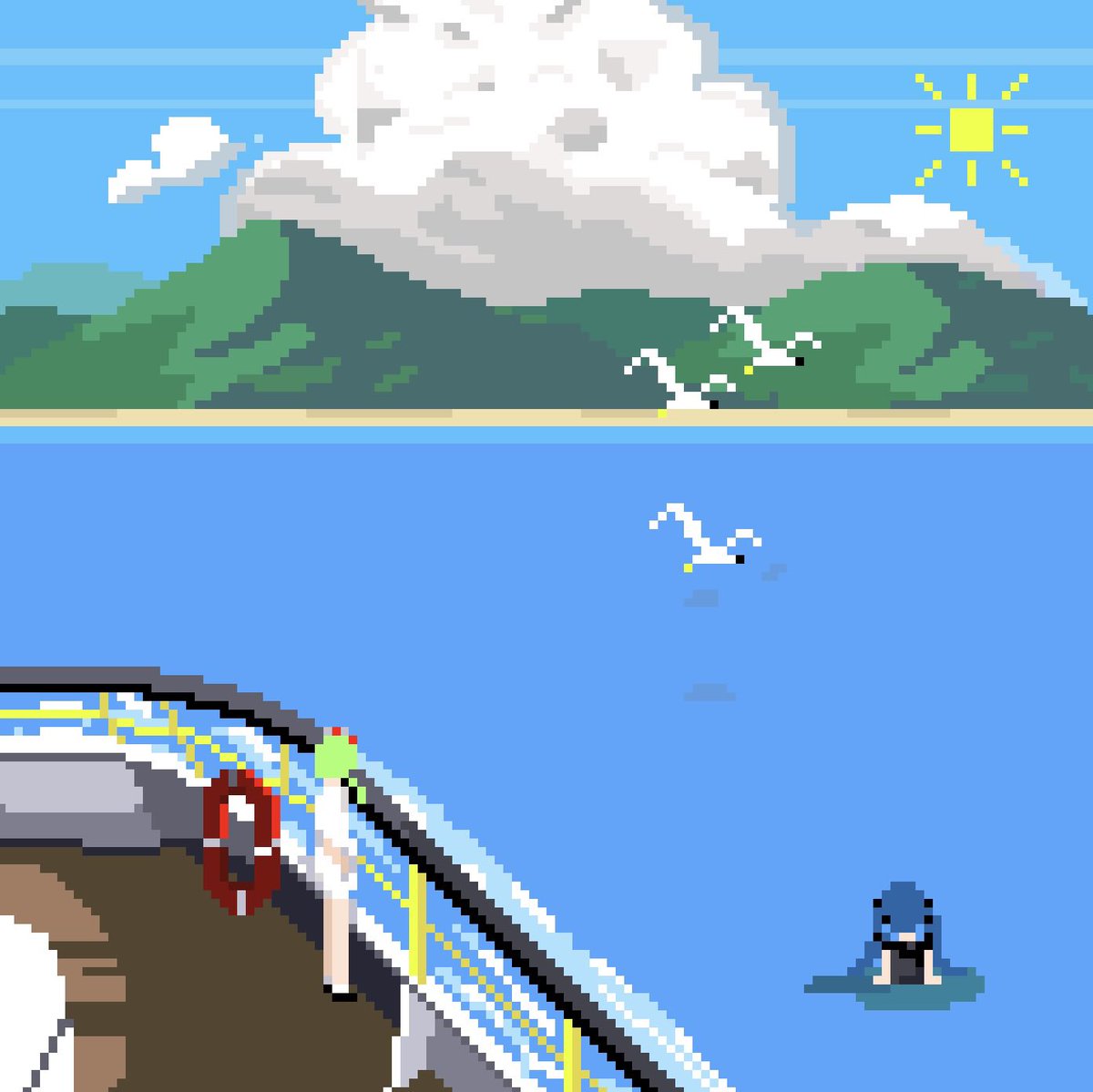 ④船に乗っているGUMI &申し訳ない程度に描かさせて頂いた深海少女ミク #VOCALOID #初音ミク #GUMI #pixelart #ドット絵