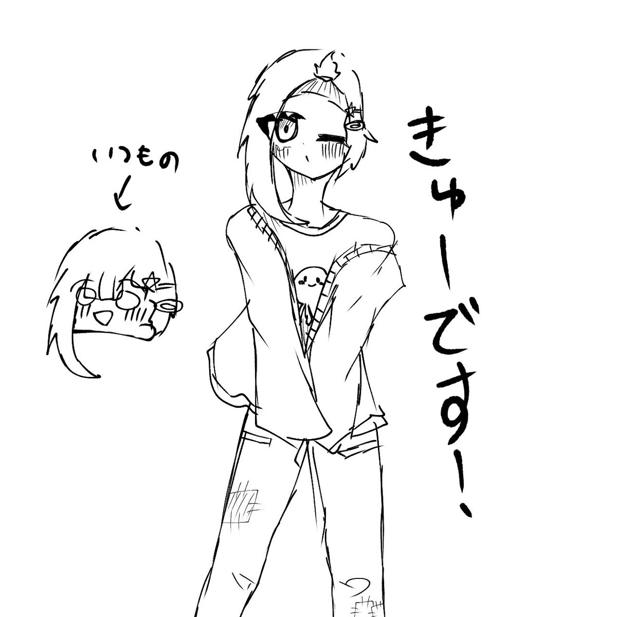 前髪上げてパーカー?下ろしてデニム?はいてもらったきゅーちゃん #きゅーぱれっと #メメリ絵