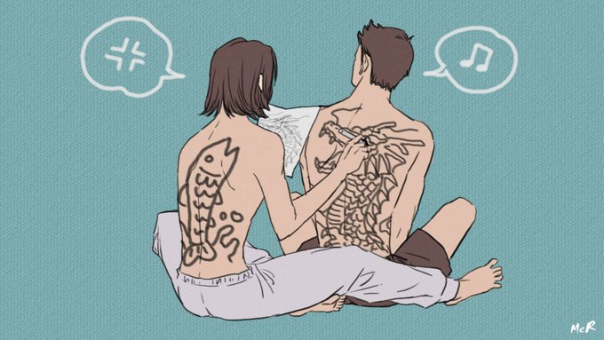60 165 お互いの背中に将来入れたい紋々の柄をおえかきする中学生の🌻兄弟(錦がやたら絵心がある 22/09/18 21:41