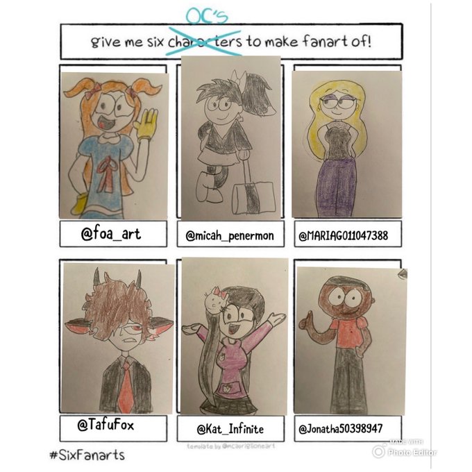 The #SixFanarts is complete, appearing as: @Kat_Infinite @foa_art @MARIAGO11047388 @TafuFox @micah_penermon @Jonatha50398947