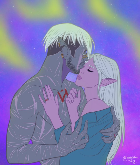 Faerûn and Jedait. So frekkin adoring ❤️ Chaotic shadar-kai bloodhunter, with his little drow prince sorcerer/warlock. Faerûn is @XtrterrestrialL ’s character, Jedait is mine 🥰 #dnd #dndart #originalcharacterart #curseofstrahd #elvesftw #vaffanculoshadarkai #ravenqueen