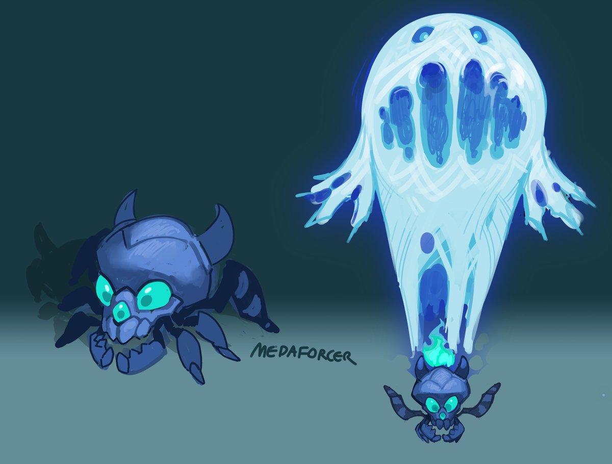 thinkin about... spider. Maybe its like those spiders that make little parachutes to get around but instead its, like, spooky web ghost and you think that's the real monster but its really just a lil guy twitter.com/sophikyu/statu…