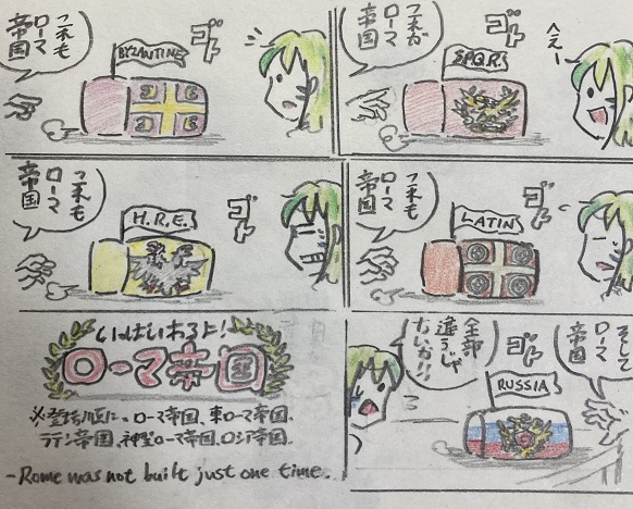 8 18 #世界史 #アナログ絵 #アナログイラスト 世界史小噺「ややこしい皇帝家」 キリスト教を公認した事蹟で世界史の教科書にも載ってるローマ皇帝コンスタンティヌス1世(大帝)ですが、彼の父親や三人の息子たちは全員’’コンスタン…’’という名前で、非常にややこしいです。頭がショート! 22/10/24 19:06