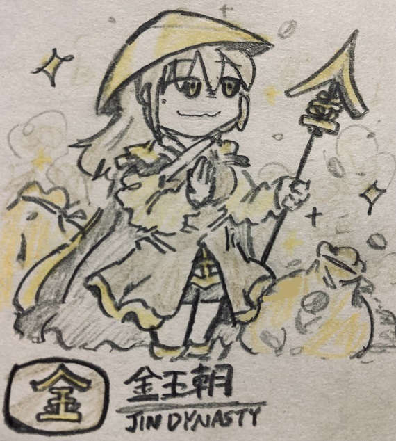 #世界史 #アナログ絵 #アナログイラスト 本日4月3日は「大帝国集合写真」の投稿をお休みさせていただきます。 代わりに、以前描いた金王朝さん(13世紀)のイラストをば。金貨…ではなく銀貨の流通を推し進めました。次の集合写真では、彼女と同じ北方民族にルーツを持つ帝国が写るので、お楽しみに!