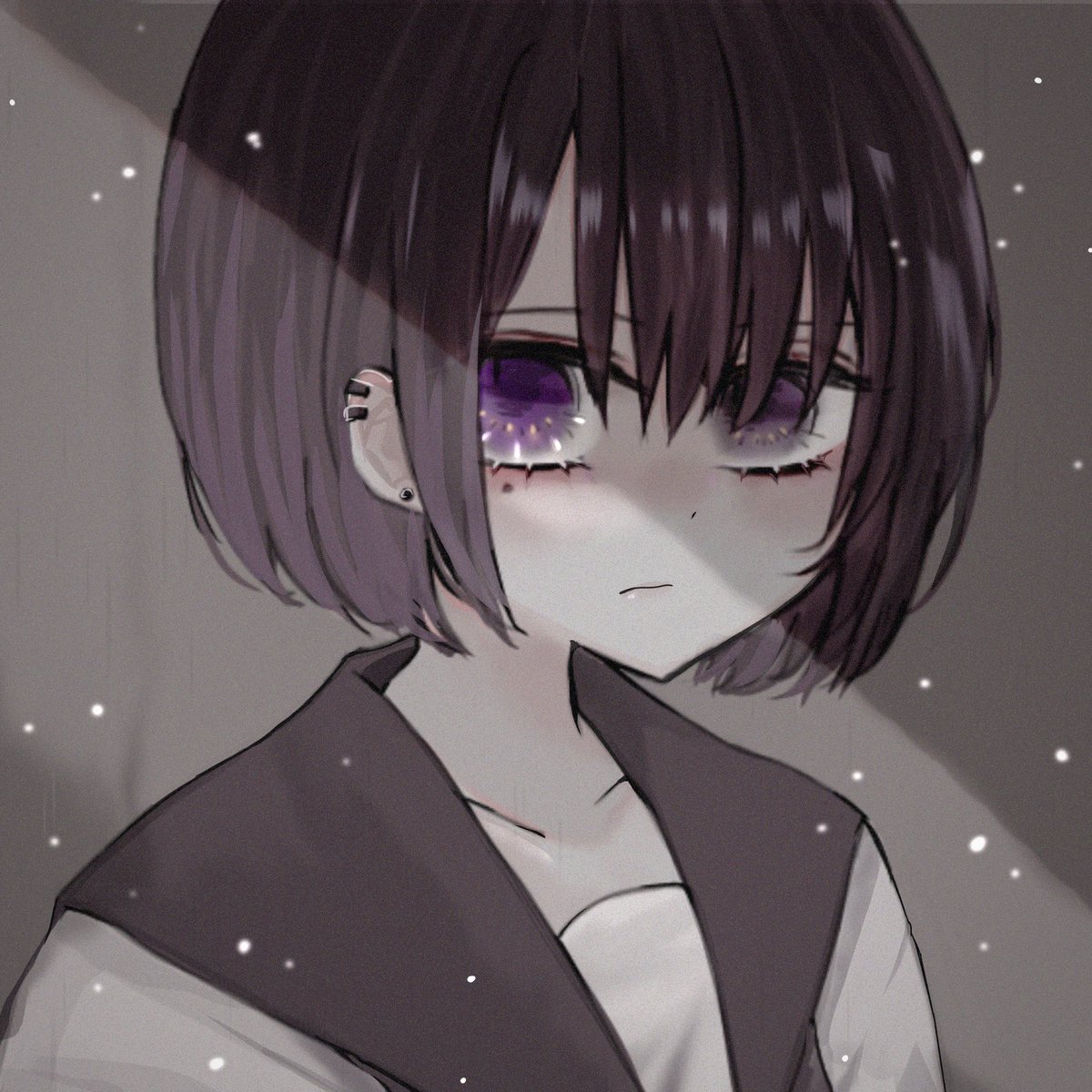 紫と灰色を混ぜて薄めたみたいな色と 言うこと聞いてくれなさそうな女が好きです。 三白眼萌え👁🗨 🔁 中心に🖤🔁巡回しますᕦ(ò_óˇ) #冬の創作クラスタフォロー祭り #絵描きさんと繋がりたい