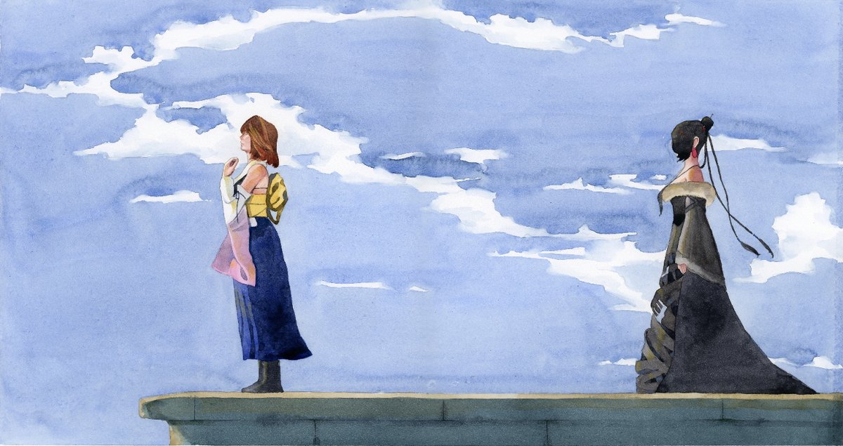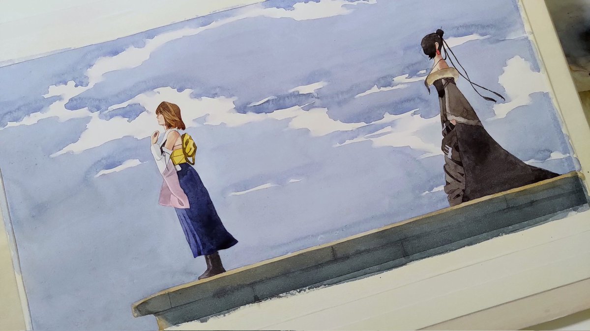 🌟Watercolor painting of Yuna and Lulu from FFX🌟 I had fun painting something in widescreen format! #ff10 #illust #finalfantasy #イラスト #水彩イラスト #ファイナルファンタジー #水彩