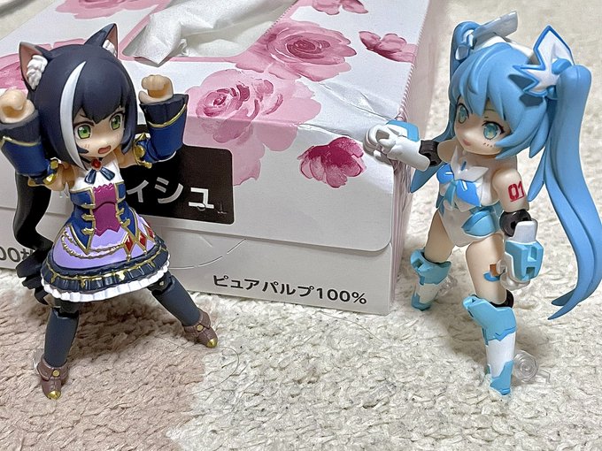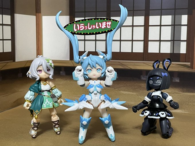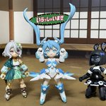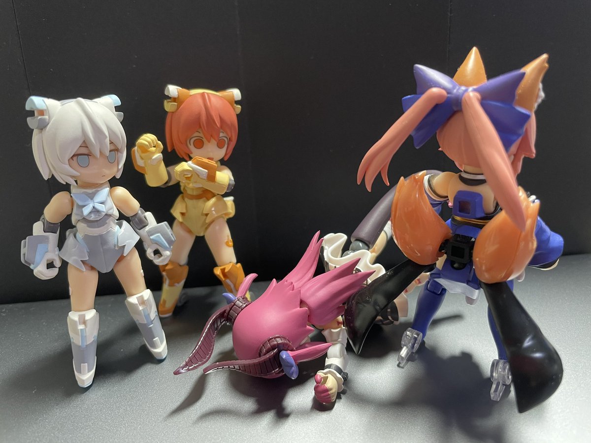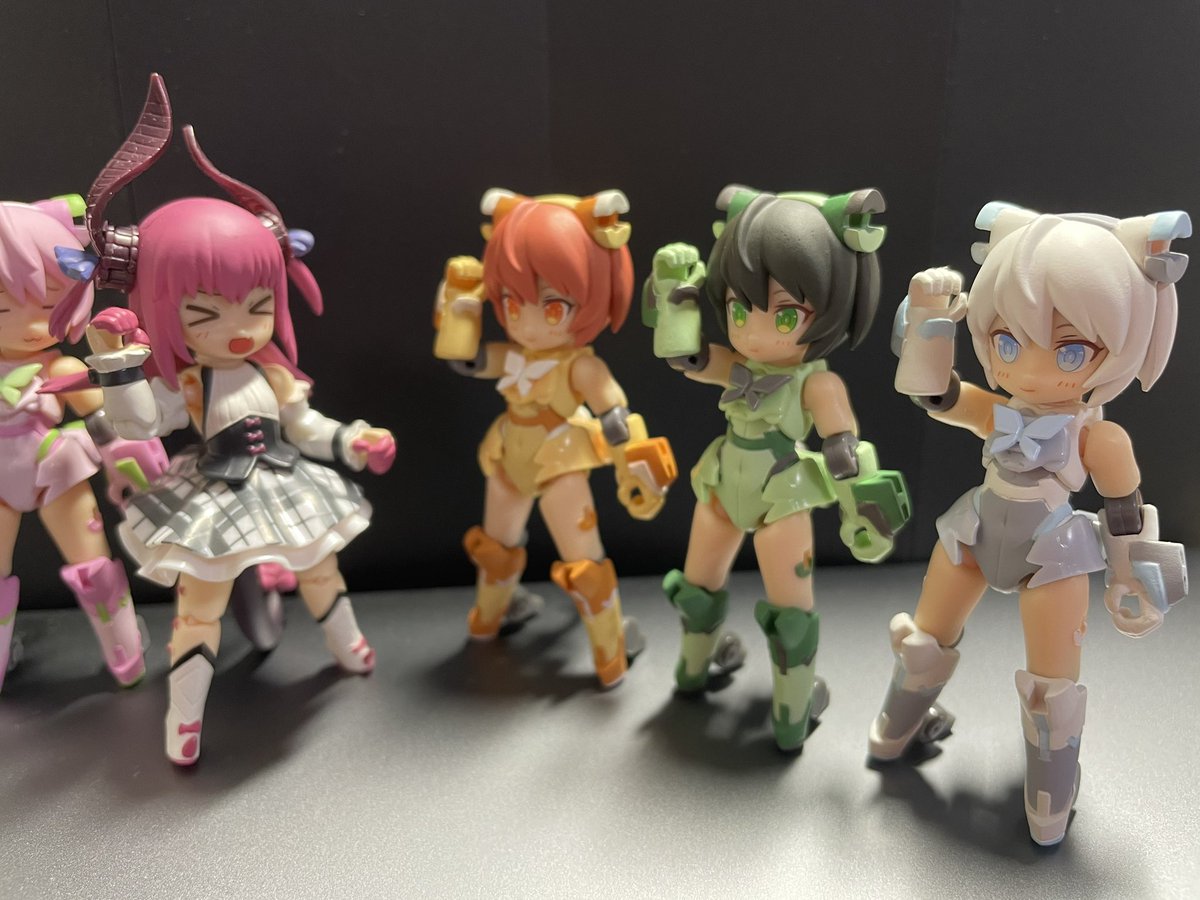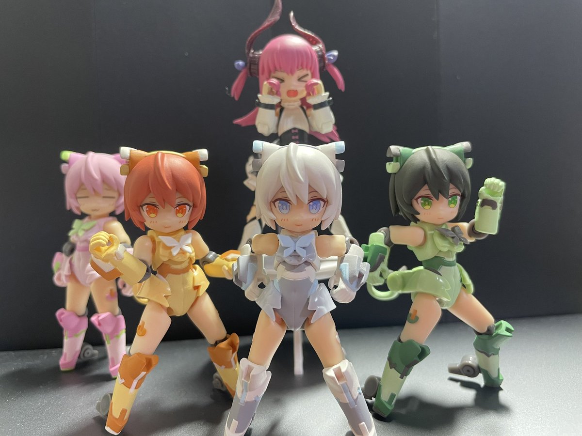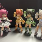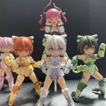#デスクトップアーミー 胴体のボールジョイント部分がバグってて改修に時間がかかったけど、コッコロも完成。 並べると一気に騒がしい感じになるな。